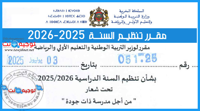 مقرر تنظيم السنة كاملا بتاريخ 03 يوليوز 2025